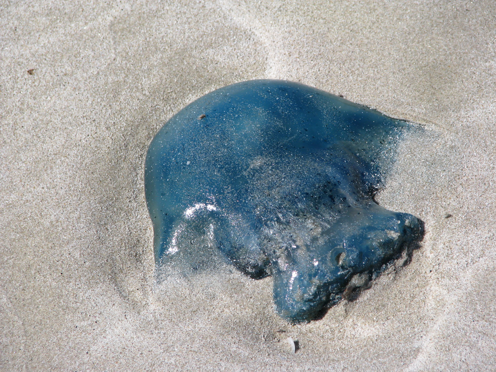 | washed up mushroom jelly… | Drew | 30.330 / -87.120 | Approximately 12" diameter Rhopilema verrilli found |