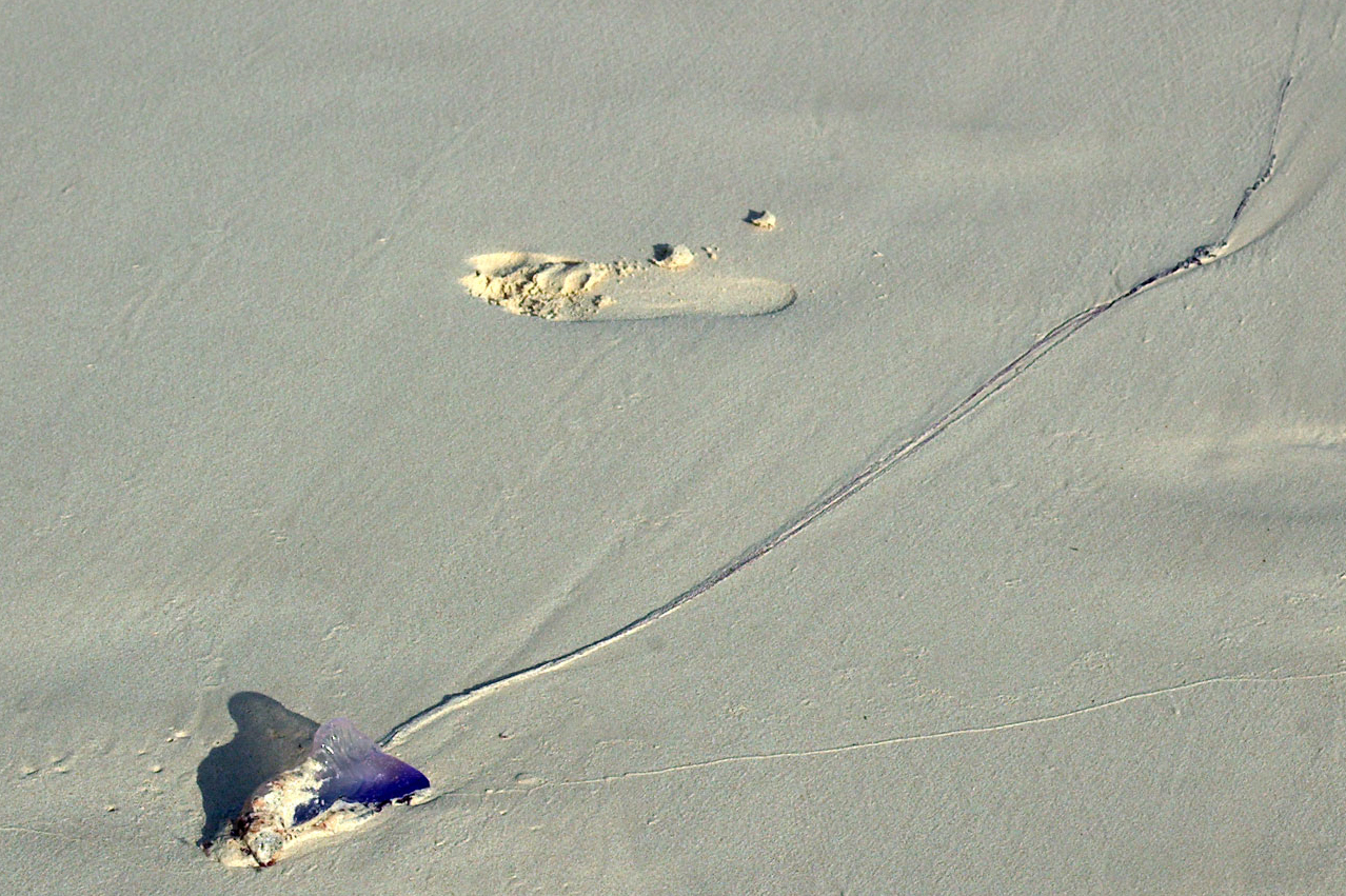 -32.970 / -71.550 | These were all over the beach just north of Valpariso. | Man o war | Physalia | |