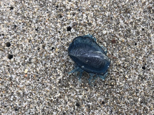 | Blue sail on shore | Jellywatcher | 25.790 / -80.130 | Washed up on the tide line on south beach Miami. |