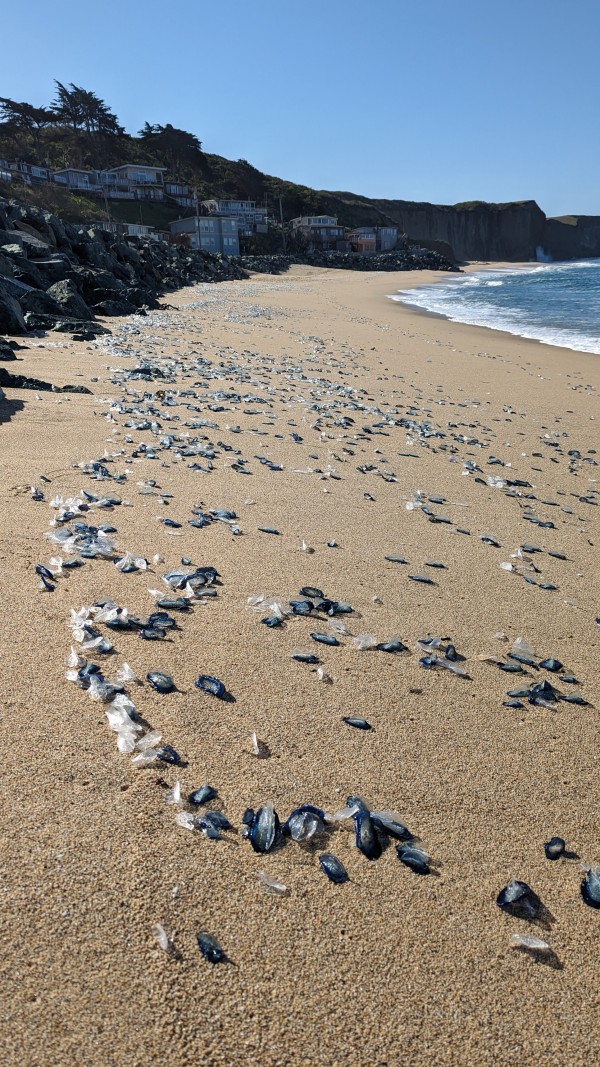 Tons of Vellellas on Ocean Beach beaches.