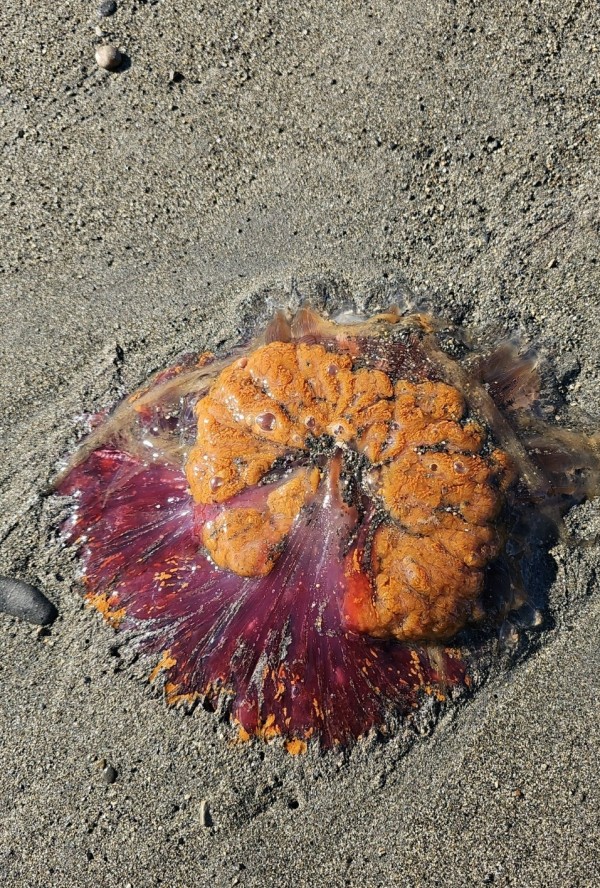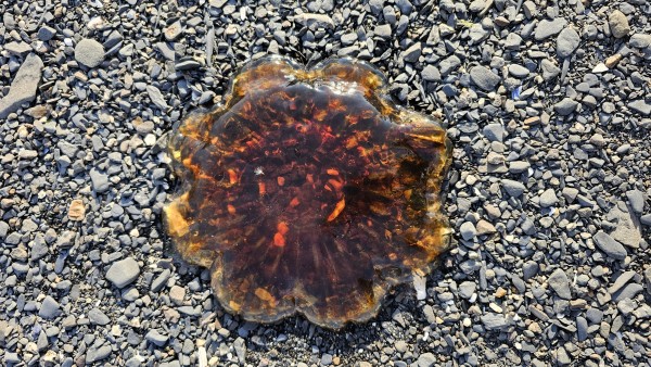 Hundred of huge jellies washed up on the beach from the h
