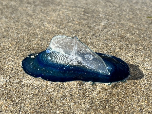 Over a 100 small blue cobweb-like jelly fish about 2 inch