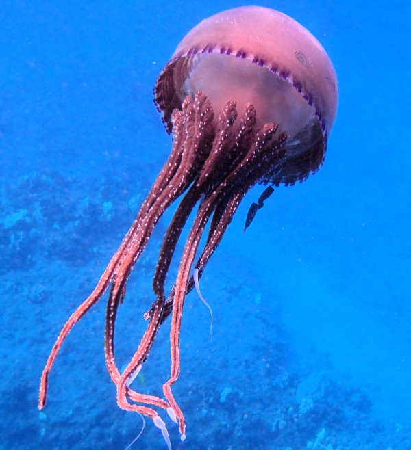 Plenty smaller reddish jellyfish