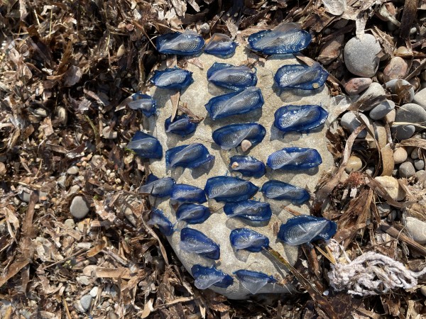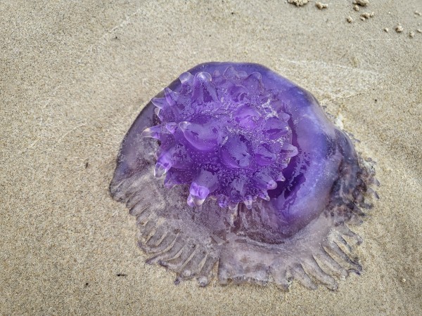 Hundreds of Pelagia noctiluca found on the beach at Santa