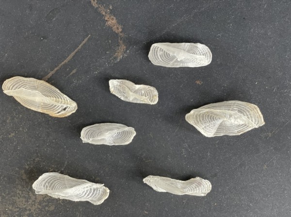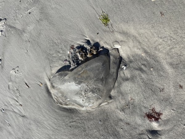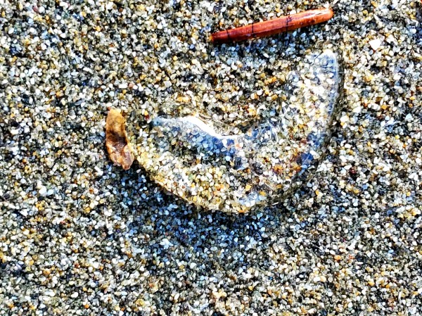 Multiple clear 3 to 5 inch jellyfish washed up on shore a