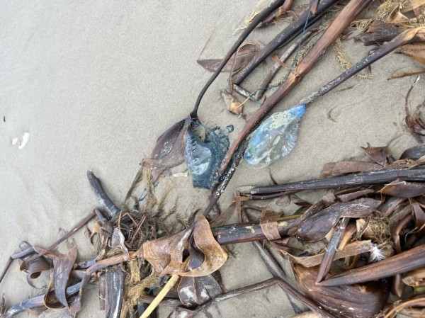 Multiple by-the-wind jellies washed ashore on New Quay/Ll