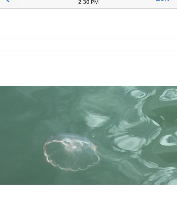 Large, 18 inch white spotted jellyfish 10-15 feet off the