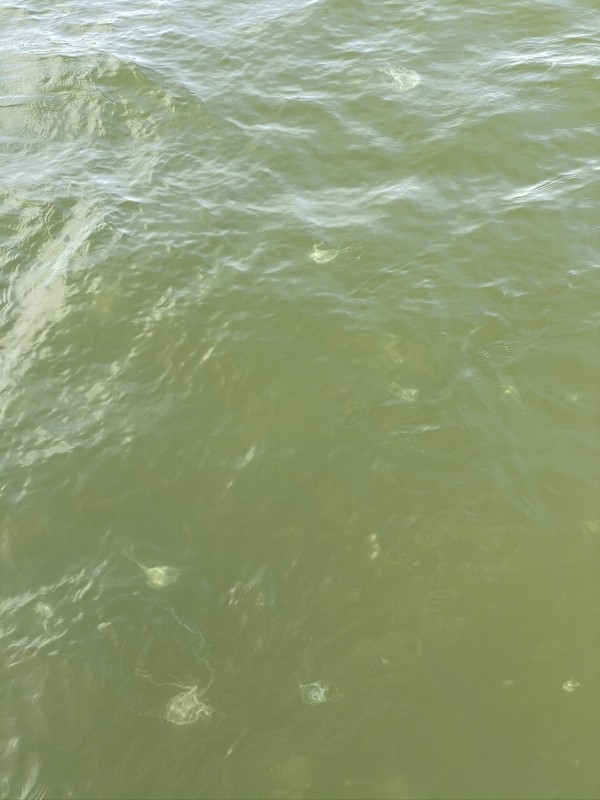 Multiple small jellyfish at The Narrows at First Landing