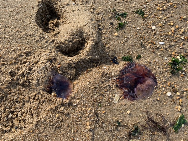 Spotted 1000+ blue bottle jellyfish that were stranded as