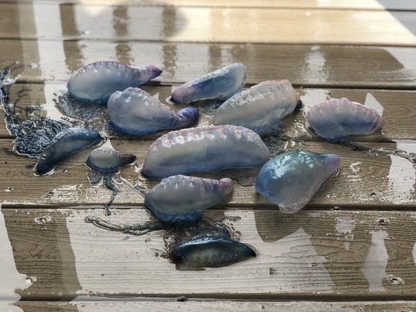 Multiple Man O War jellies on Bald Head Island, NC beache