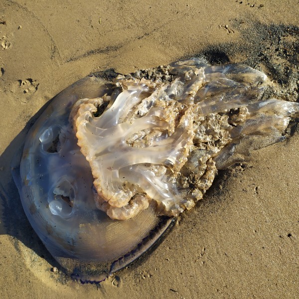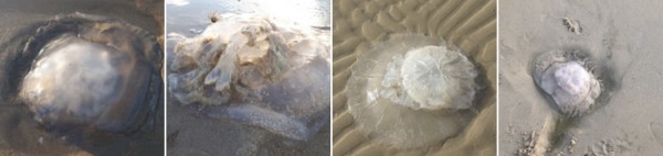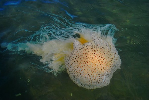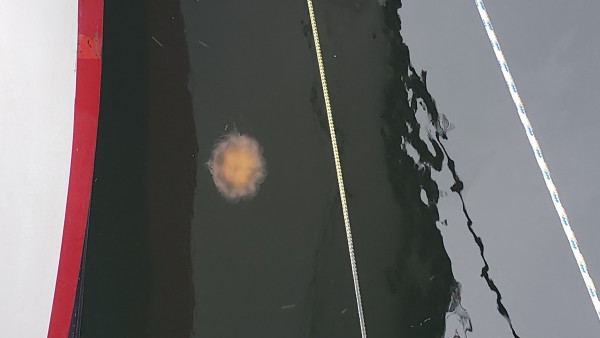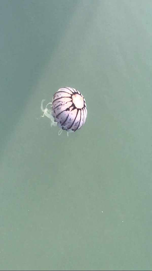 One Aurelia jelly being consumed by a halfmoon (Medialuna