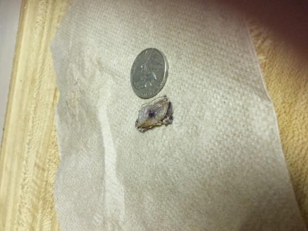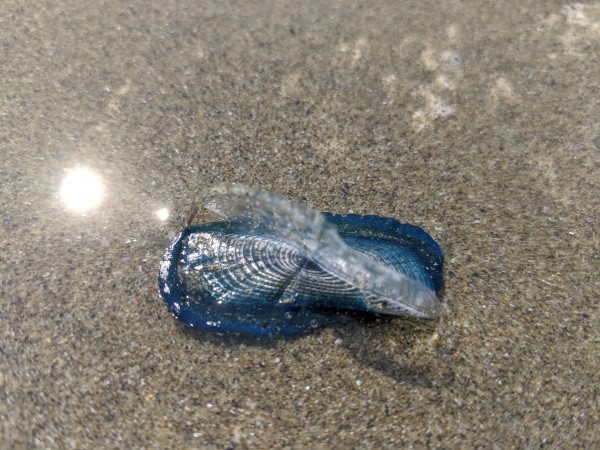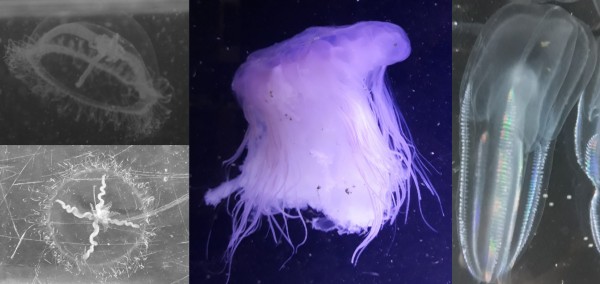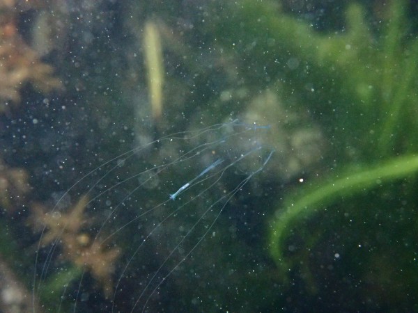 Tiny umbrella top jelly with 8 long tentacles and a cente