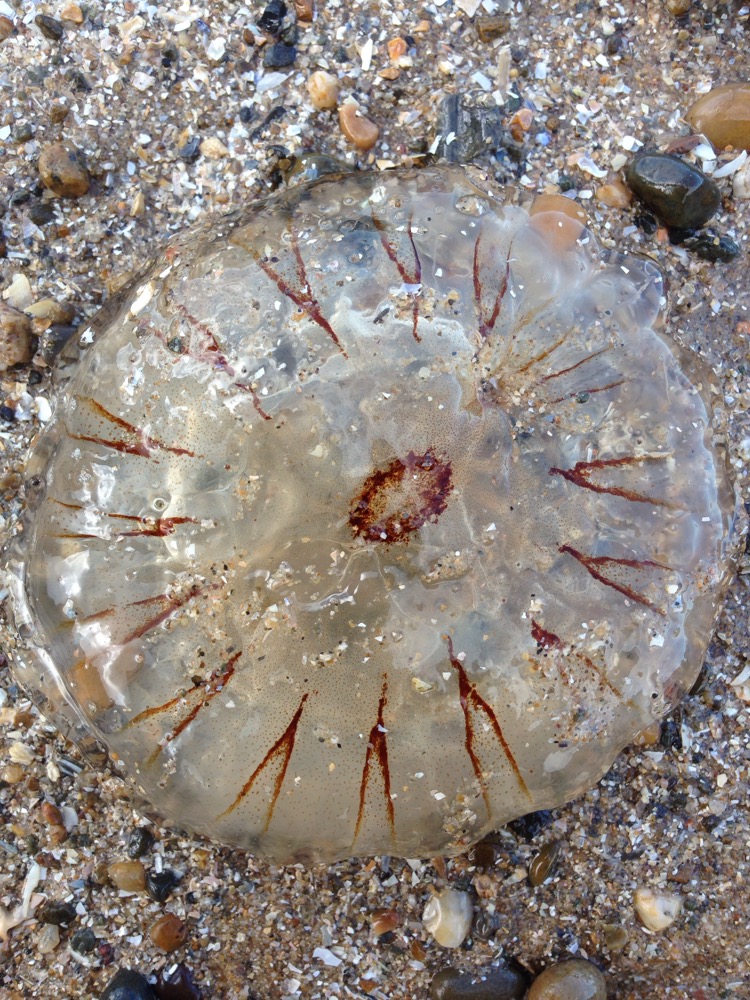 Single fresh compass jellyfish in the strand line at chur