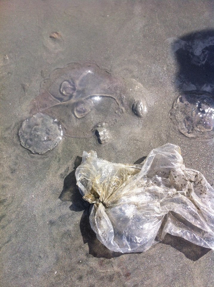 moonjellyfish washing on the beach