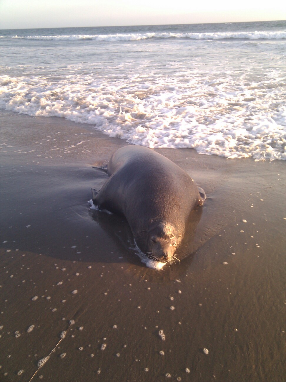 Sea lion or seal pup on beach about 5 miles north of Sant
