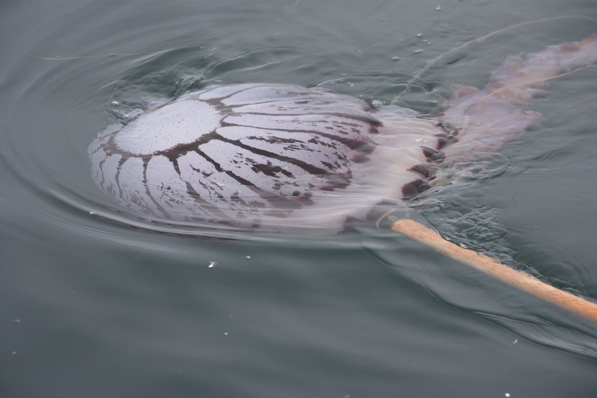A juvenile Chrysaora fuscescens was pulled up in a surfac