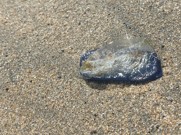 Many Velella were washing up with the low tide.